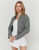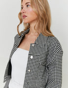 Give your wardrobe a trendy update with this gingham cropped trucker jacket, a perfect mix of classic and cool. Designed with a bold checked pattern, this buttoned jacket adds a statement touch to any outfit. The cropped fit and long sleeves create a flattering silhouette, making it easy to layer over dresses, jeans, or skirts. Whether you're going for a casual day look or a stylish night out, this trucker jacket is a must-have. Chic, versatile, and effortlessly stylish, it’s the perfect go-to piece for any season!