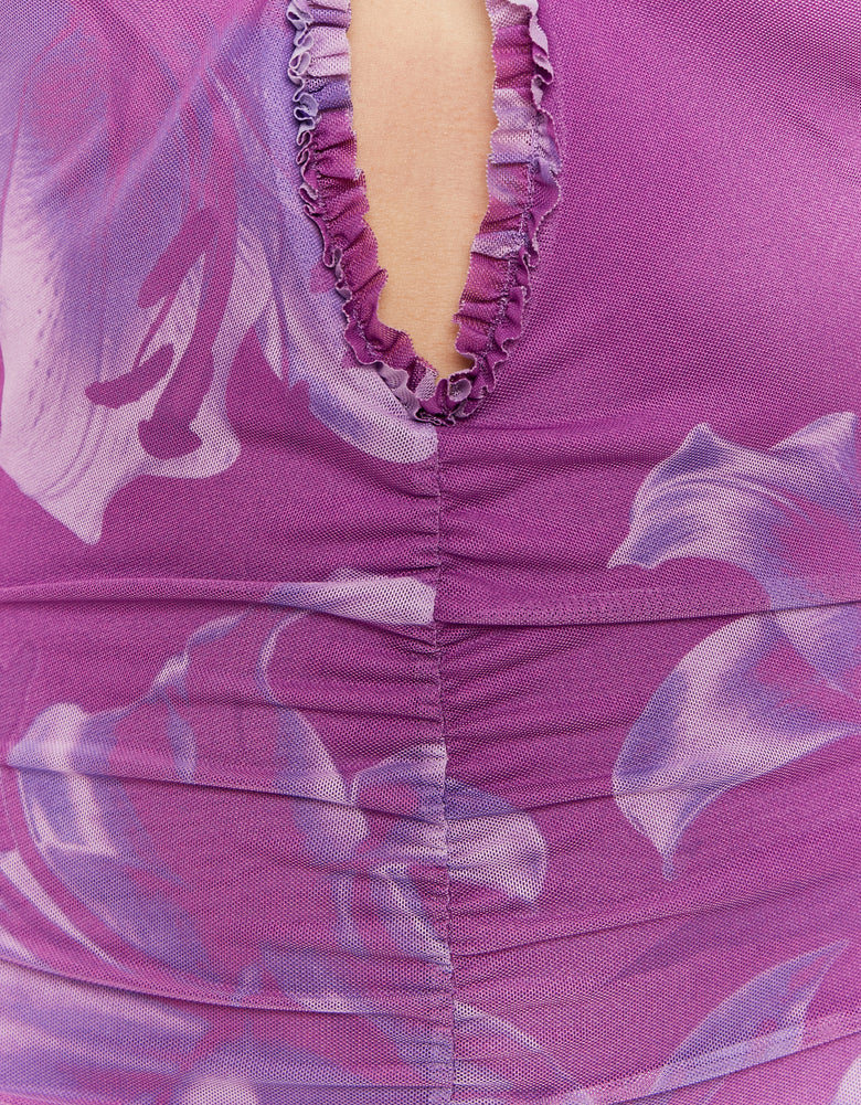 Printed Mesh Long Dress